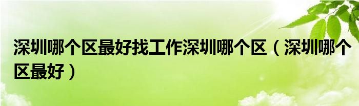 关于深圳哪个区最好找工作深圳哪个区,深圳哪个区最好这个很多人还不知道,今天菲菲来为大家解答以上的问题,现在让我们一起来看看吧!