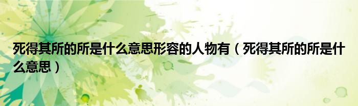 关于死得其所的所是什么意思形容的人物有,死得其所的所是什么意思这个很多人还不知道,今天菲菲来为大家解答以上的问题,现在让我们一起来看看吧!