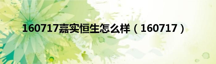 关于160717嘉实恒生怎么样,160717这个很多人还不知道,今天菲菲来为大家解答以上的问题,现在让我们一起来看看吧!