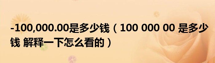 关于-100,000.00是多少钱,100 000 00 是多少钱 解释一下怎么看的这个很多人还不知道,今天菲菲来为大家解答以上的问题,现在让我们一起来看看吧!