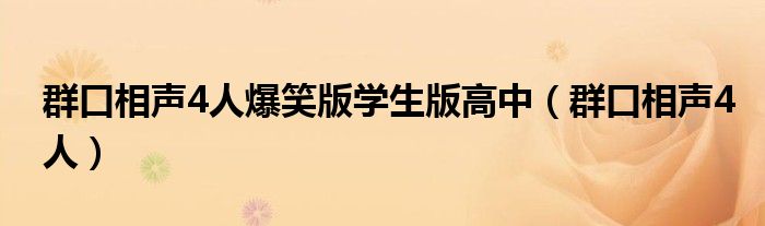 关于群口相声4人爆笑版学生版高中,群口相声4人这个很多人还不知道,今天菲菲来为大家解答以上的问题,现在让我们一起来看看吧!