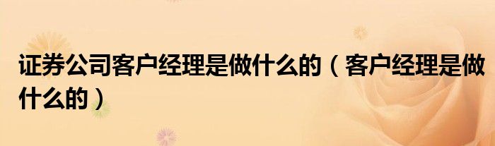 关于证券公司客户经理是做什么的,客户经理是做什么的这个很多人还不知道,今天菲菲来为大家解答以上的问题,现在让我们一起来看看吧!