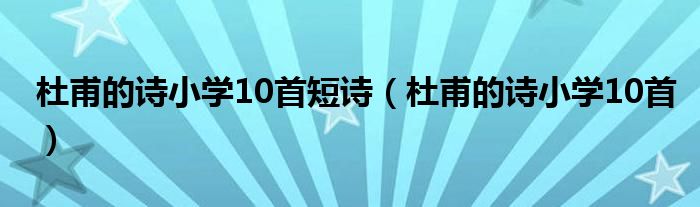 关于杜甫的诗小学10首短诗,杜甫的诗小学10首这个很多人还不知道,今天菲菲来为大家解答以上的问题,现在让我们一起来看看吧!