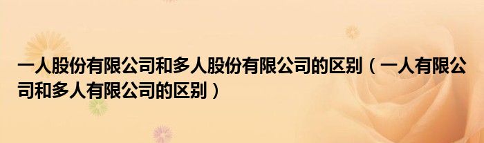 关于一人股份有限公司和多人股份有限公司的区别,一人有限公司和多人有限公司的区别这个很多人还不知道,今天菲菲来为大家解答以上的问题,现在让我们一起来看看吧!