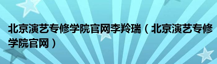 北京演艺专修学院官网李羚瑞(北京演艺专修学院官网)