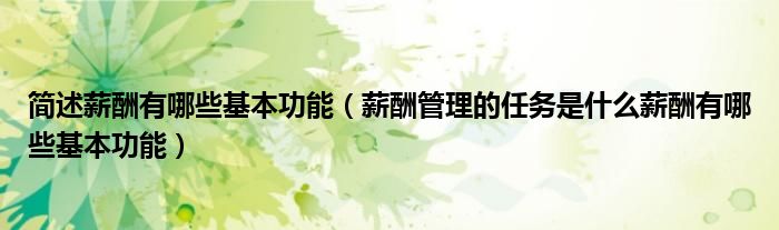 简述薪酬有哪些基本功能(薪酬管理的任务是什么薪酬有哪些基本功能)