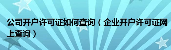 公司开户许可证如何查询(企业开户许可证网上查询)