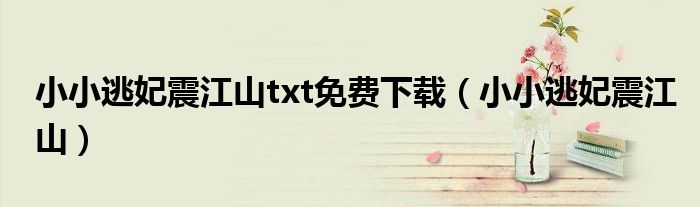 关于小小逃妃震江山txt免费下载,小小逃妃震江山这个很多人还不知道,今天菲菲来为大家解答以上的问题,现在让我们一起来看看吧!