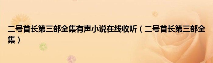 关于二号首长第三部全集有声小说在线收听,二号首长第三部全集这个很多人还不知道,今天菲菲来为大家解答以上的问题,现在让我们一起来看看吧!