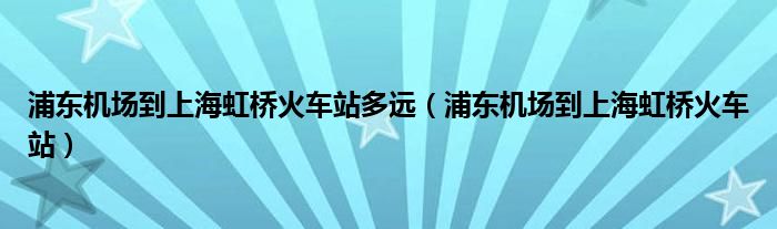 浦东机场到上海虹桥火车站多远(浦东机场到上海虹桥火车站)
