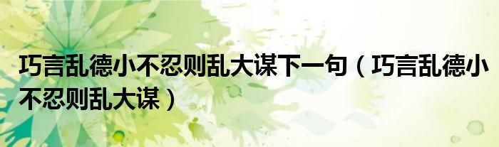 关于巧言乱德小不忍则乱大谋下一句,巧言乱德小不忍则乱大谋这个很多人还不知道,今天菲菲来为大家解答以上的问题,现在让我们一起来看看吧!
