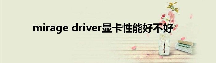 关于mirage driver显卡性能好不好这个很多人还不知道,今天菲菲来为大家解答以上的问题,现在让我们一起来看看吧!