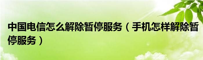 中国电信怎么解除暂停服务(手机怎样解除暂停服务)