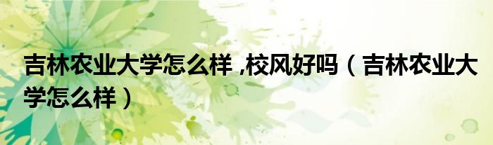 吉林农业大学怎么样 ,校风好吗(吉林农业大学怎么样)