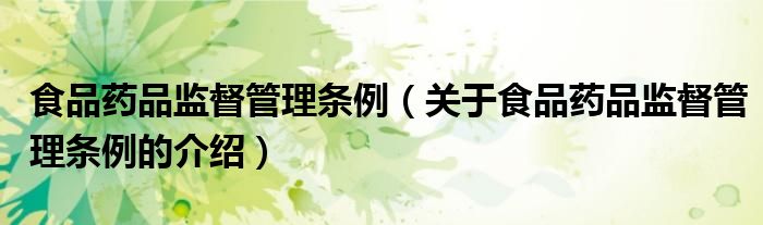 大家好,今天小乐来为大家解答以上的问题。食品药品监督管理条例,关于食品药品监督管理条例的介绍很多人还不知道,现在让我们一起来看看吧!