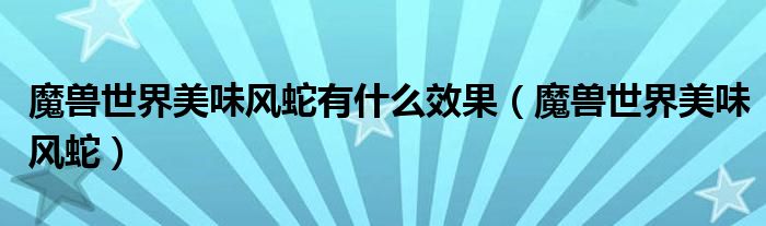 关于魔兽世界美味风蛇有什么效果,魔兽世界美味风蛇这个很多人还不知道,今天菲菲来为大家解答以上的问题,现在让我们一起来看看吧!
