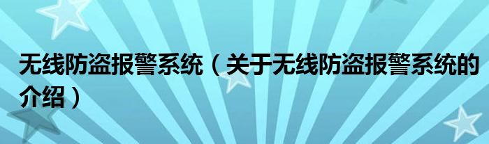 无线防盗报警系统(关于无线防盗报警系统的介绍)