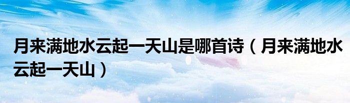 大家好,小晋来为大家解答以下问题,关于月来满地水云起一天山是哪首诗,月来满地水云起一天山很多人还不知道,今天让我们一起来看看吧!