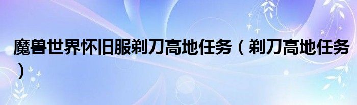 魔兽世界怀旧服剃刀高地任务(剃刀高地任务)