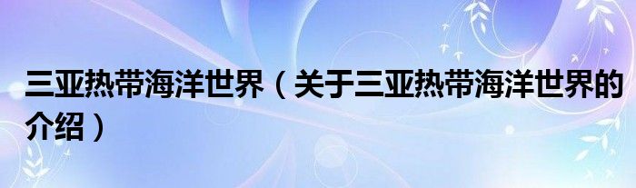 大家好,今天小乐来为大家解答以上的问题。三亚热带海洋世界,关于三亚热带海洋世界的介绍很多人还不知道,现在让我们一起来看看吧!