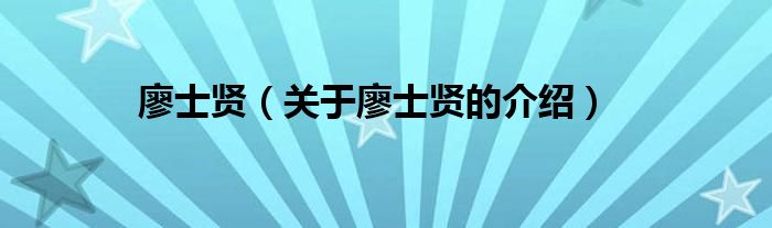 大家好,今天小乐来为大家解答以上的问题。廖士贤,关于廖士贤的介绍很多人还不知道,现在让我们一起来看看吧!