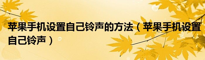 大家好,小晋来为大家解答以下问题,关于苹果手机设置自己铃声的方法,苹果手机设置自己铃声很多人还不知道,今天让我们一起来看看吧!