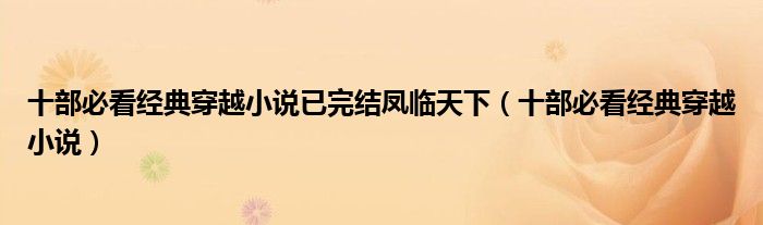 十部必看经典穿越小说已完结凤临天下(十部必看经典穿越小说)