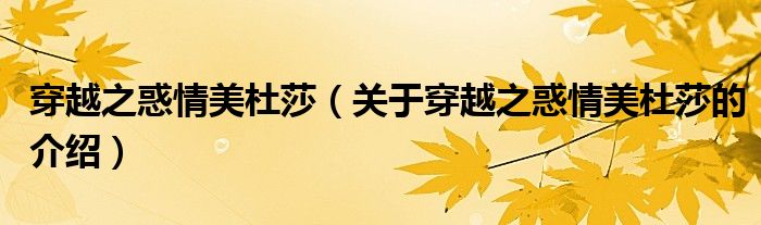 穿越之惑情美杜莎(关于穿越之惑情美杜莎的介绍)