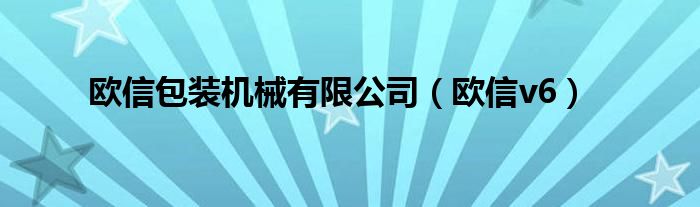 大家好,来宝来为大家解答以下问题,欧信包装机械有限公司,欧信v6很多人还不知道,今天让我们一起来看看吧!