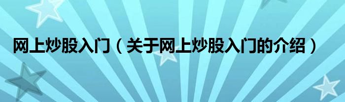 网上炒股入门(关于网上炒股入门的介绍)