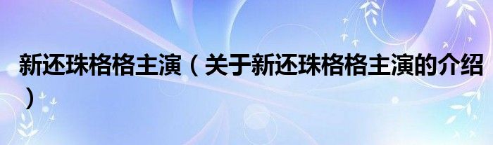 大家好,小都来为大家解答以上的问题。新还珠格格主演,关于新还珠格格主演的介绍很多人还不知道,现在让我们一起来看看吧!