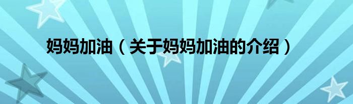 大家好,小都来为大家解答以上的问题。妈妈加油,关于妈妈加油的介绍很多人还不知道,现在让我们一起来看看吧!