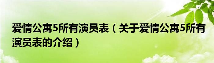 大家好,小都来为大家解答以上的问题。爱情公寓5所有演员表,关于爱情公寓5所有演员表的介绍很多人还不知道,现在让我们一起来看看吧!
