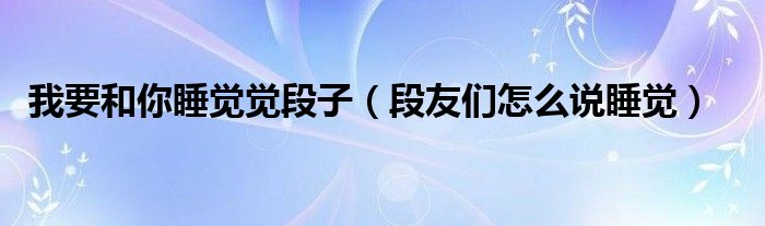 我要和你睡觉觉段子(段友们怎么说睡觉)