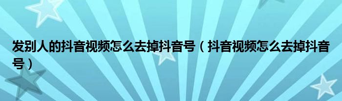 大家好,小晋来为大家解答以下问题,关于发别人的抖音视频怎么去掉抖音号,抖音视频怎么去掉抖音号很多人还不知道,今天让我们一起来看看吧!