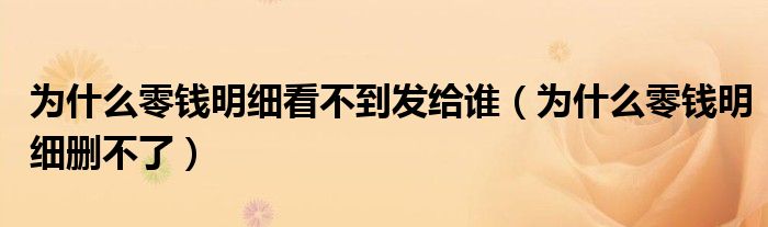 大家好,小晋来为大家解答以下问题,关于为什么零钱明细看不到发给谁,为什么零钱明细删不了很多人还不知道,今天让我们一起来看看吧!