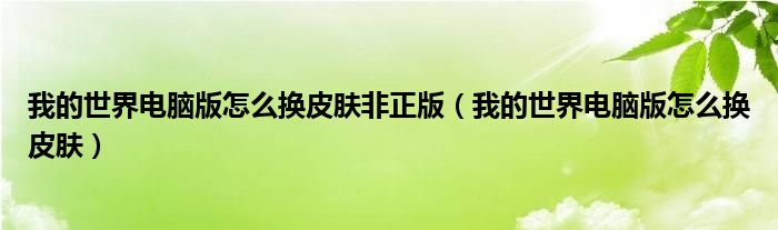 关于我的世界电脑版怎么换皮肤非正版,我的世界电脑版怎么换皮肤这个很多人还不知道,今天菲菲来为大家解答以上的问题,现在让我们一起来看看吧!