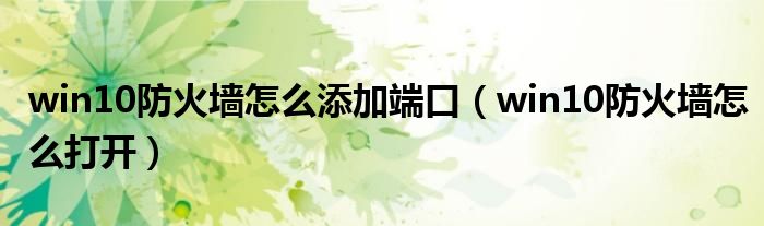 win10防火墙怎么添加端口(win10防火墙怎么打开)