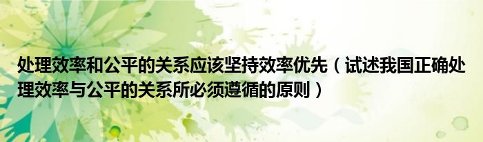 关于处理效率和公平的关系应该坚持效率优先,试述我国正确处理效率与公平的关系所必须遵循的原则这个很多人还不知道,今天菲菲来为大家解答以上的问题,现在让我们一起来看看吧!