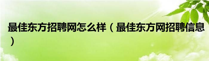 最佳东方招聘网怎么样(最佳东方网招聘信息)