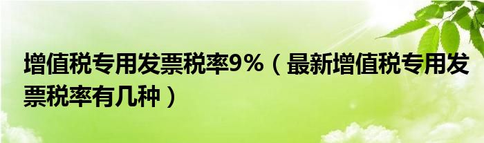 关于增值税专用发票税率9%,最新增值税专用发票税率有几种这个很多人还不知道,今天菲菲来为大家解答以上的问题,现在让我们一起来看看吧!
