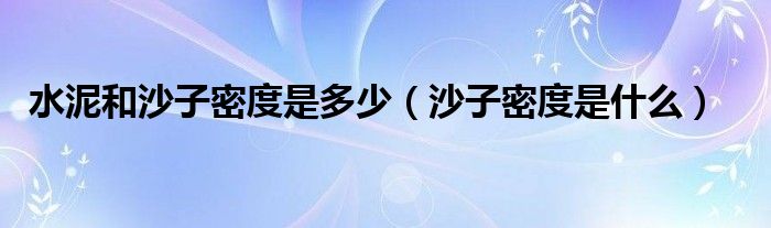 关于水泥和沙子密度是多少,沙子密度是什么这个很多人还不知道,今天菲菲来为大家解答以上的问题,现在让我们一起来看看吧!