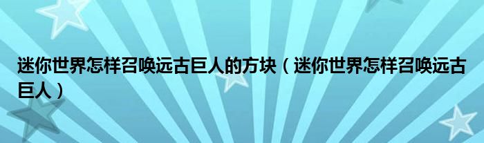关于迷你世界怎样召唤远古巨人的方块,迷你世界怎样召唤远古巨人这个很多人还不知道,今天菲菲来为大家解答以上的问题,现在让我们一起来看看吧!