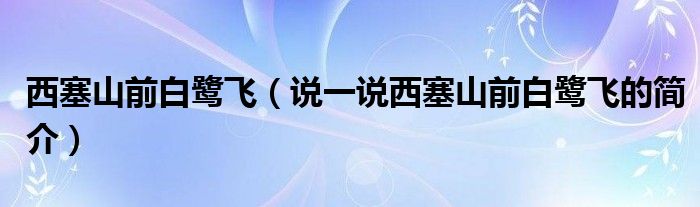西塞山前白鹭飞(说一说西塞山前白鹭飞的简介)