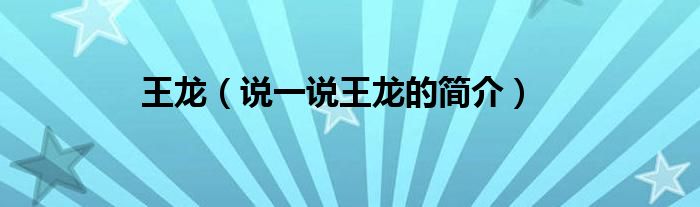 夏弥来为大家解答以下的问题,王龙,说一说王龙的简介,现在让我们一起来看看吧!