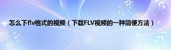大家好,综合小编来为大家讲解下怎么下flv格式的视频,下载FLV视频的一种简便方法这个很多人还不知道,现在让我们一起来看看吧!