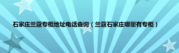 大家好,综合小编来为大家讲解下石家庄兰蔻专柜地址电话查询,兰蔻石家庄哪里有专柜这个很多人还不知道,现在让我们一起来看看吧!