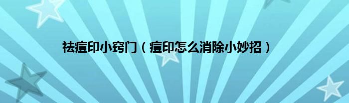 祛痘印小窍门(痘印怎么消除小妙招)