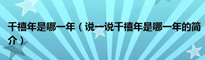 千禧年是哪一年(说一说千禧年是哪一年的简介)