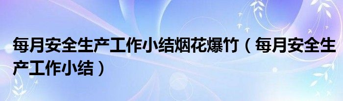 每月安全生产工作小结烟花爆竹(每月安全生产工作小结)